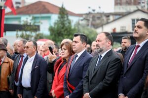 Në këtë ditë historike, përfaqësues të pushtetit vendor, deputetë, veteranë, nxënës dhe familjarë të dëshmorëve u mblodhën për të nderuar bijtë e bijat e këtij qyteti që dhanë jetën për liri.