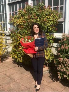 Pas përfundimit të studimeve, u përballa me një zgjedhje tjetër, ndërmjet doktoraturës dhe punës. Vendosa të punoja fillimisht në një industri që merrej me prodhimin e produkteve kozmetike në sasi të mëdha industriale, pa e lënë pas dore ëndrrën për doktoraturën. Në janar të vitit 2016,u punësova në një kompani kozmetike dhe aty hyra si drejtuese e laboratorit duke nisur një fazë të re të karrierës sime profesionale.