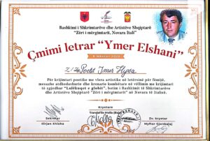 Faleminderit Bashkimit të Shkrimtarëve dhe Artistëve Shqiptarë “Zëri i Mërgimtarit” me qendër në Novara. Faleminderit Presidente, mike poete Trandafile Molla, që përveç kënaqësisë që më dhuruat, më nderuat edhe me Çmimin Letrar “Ymer Elshani”.