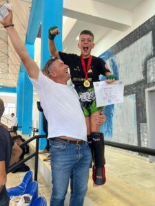 Një ndeshje që kam bërë vitin e kaluar me një sportist nga Maqedonia e Veriut, dy vite më i madh dhe me më shumë eksperiencë. Luftova fort, dëgjova trajnerin dhe fitova. U ndjeva shumë krenar.