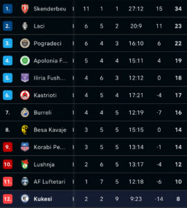 - Kukësi 2–0 Burreli
