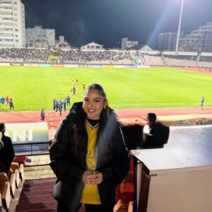 Mbështetje nga tribuna: Sara Mila në stadium për AF Elbasanin
