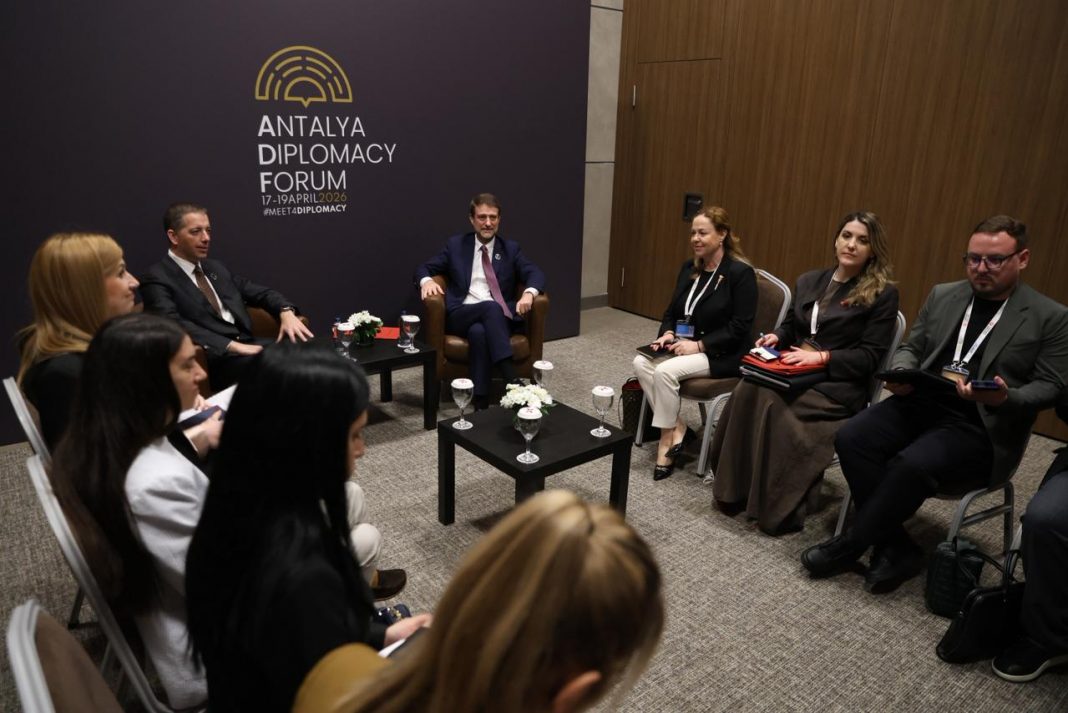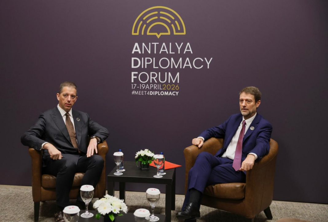 TIRANË, 18 prill 2026 /Albania Express News/ Ministri për Evropën dhe Punët e Jashtme, Ferit Hoxha pati sot takim me holmologun e Serbisë, Marko Đurić, në kuadër të Forumit Diplomatik të Antalias 2026.