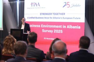 Ministrja e Ekonomisë dhe Inovacionit, Delina Ibrahimaj, mori pjesë sot në prezantimin e raportit të FIAA-s “Business Environment in Albania 2025”, ku vlerësoi kontributin e këtij dokumenti si një udhërrëfyes të rëndësishëm për përmirësimin e politikave publike dhe forcimin e dialogut me sektorin privat.