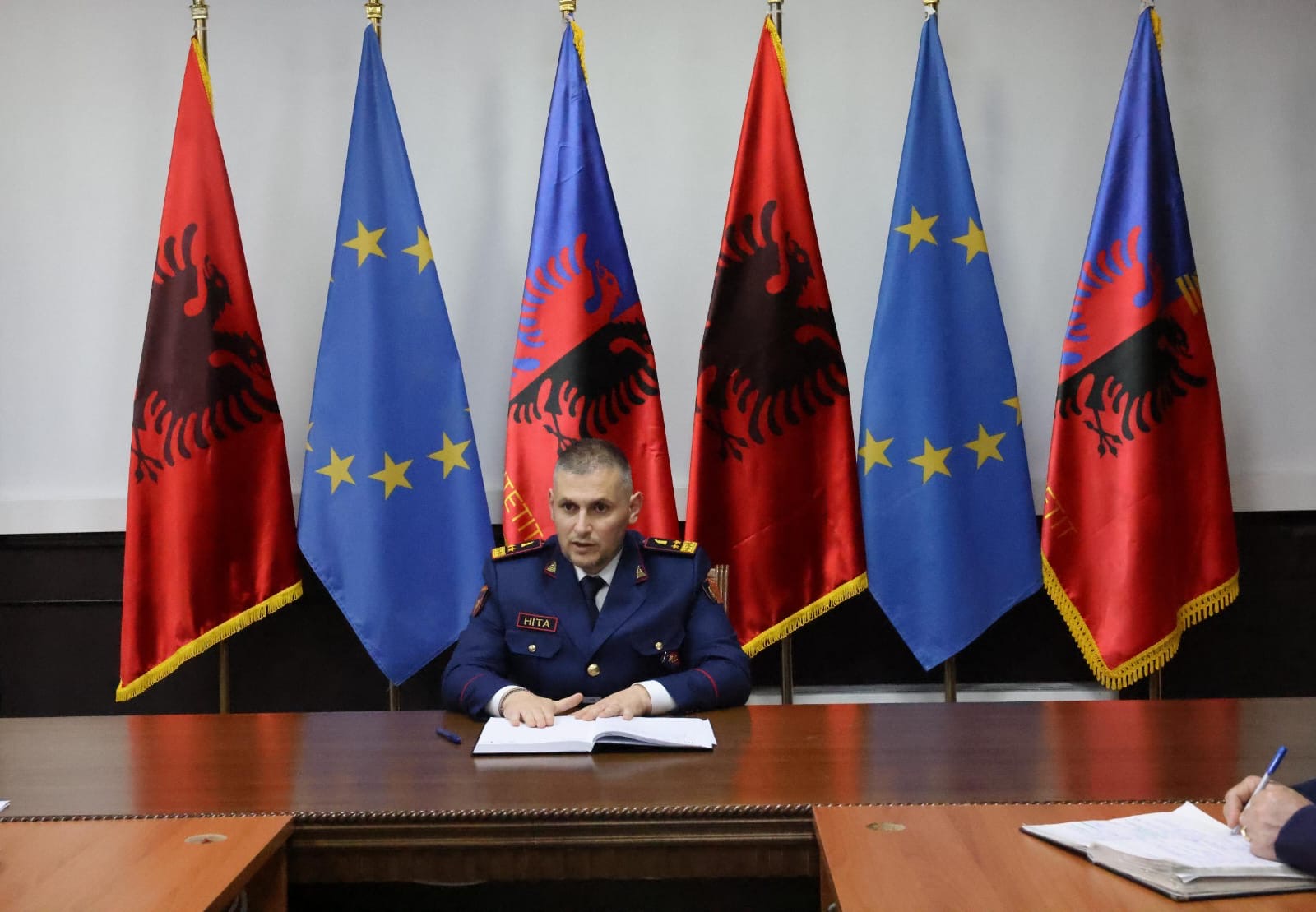 Drejtori i Përgjithshëm i Policisë së Shtetit, Drejtues Madhor Skënder Hita, zhvilloi takime me efektivët e Komisariatit të Policisë Rrugore Tiranë dhe më pas me Departamentin e Sigurisë Publike, zëvendësdrejtorët për Rendin në qarqe dhe shefat e Sektorëve të Qarkullimit Rrugor.