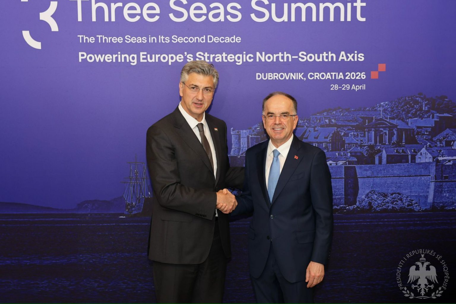 TIRANË, 29 prill 2026 /Albanoa Express News/ Presidenti Bajram Begaj, mori pjesë në samitin e 11-të të Nismës së Tre Deteve, të zhvilluar në Dubrovnik të Kroacisë, aty ku lindi kjo platformë nga 13 vende anëtare të Bashkimit Evropian.