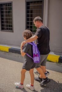 Kartolina e tyre përfshin urimin prekës: “Gëzuar ditën e parë të shkollës, zemra e babit! Sot fillon një udhëtim i ri, plot dije, miq të rinj dhe aventura të bukura. Ji kurajoz, dëgjo me zemër dhe mos harro që babi është gjithmonë këtu për të të mbështetur e për të të dashur pa fund.”