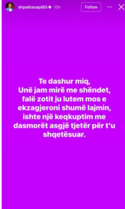 “Të dashur miq, unë jam mirë me shëndet, falë Zotit. Ju lutem mos e ekzagjeroni shumë lajmin, ishte një keqkuptim me dasmorët, asgjë tjetër për t’u shqetësuar,” – shkruan këngëtari në një postim në InstaStory.